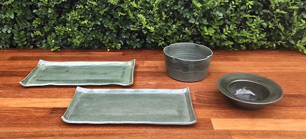 Ásia - Prato Cerâmica Redondo Verde Mini 27 cm (o do meio, tem areia também)