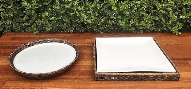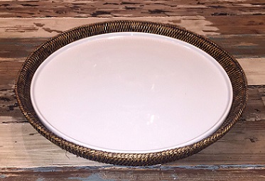 Cesto Rattan Retang. 50x15 cm + Prato Porcelana Retang. Gigante 48x14 cm