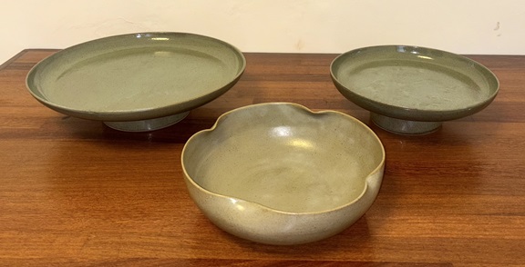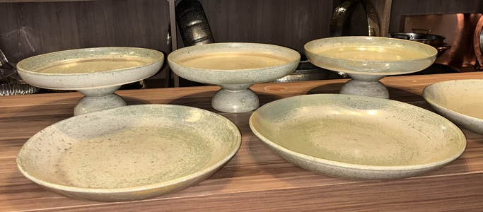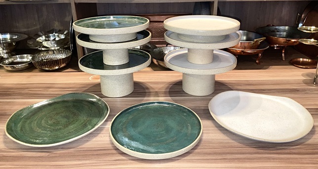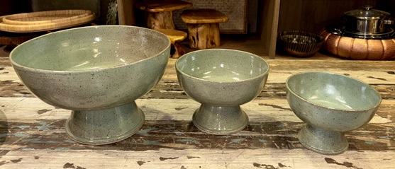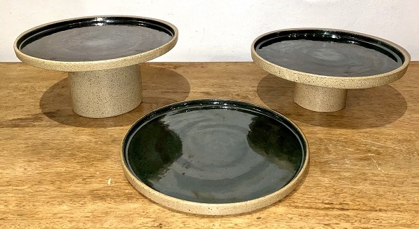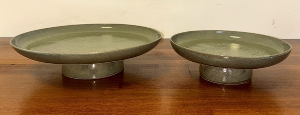 Ásia - Prato Cerâmica Redondo Verde ou Areia Mini 27 cm com Pé Médio 10 cm