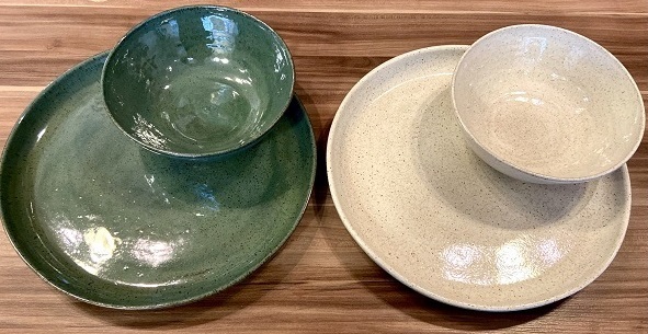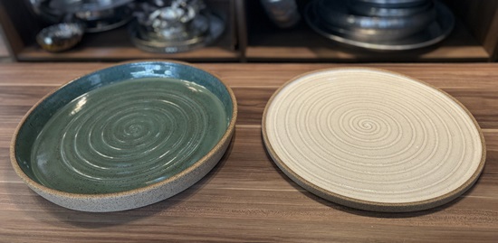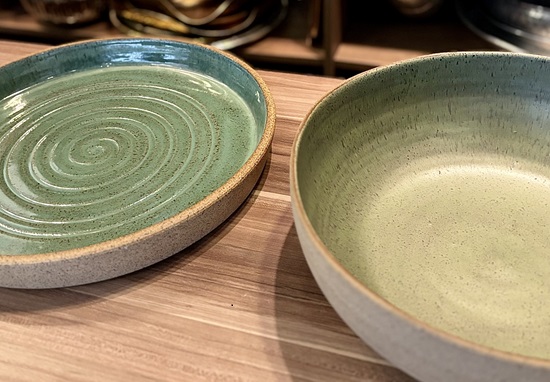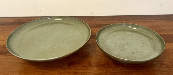 Ásia - Prato Cerâmica Redondo Verde ou Areia Mini 27 cm com Pé Baixo 5 cm