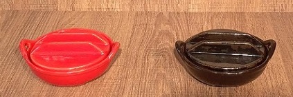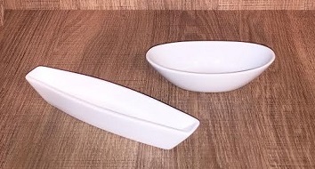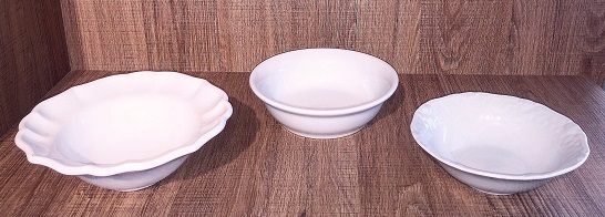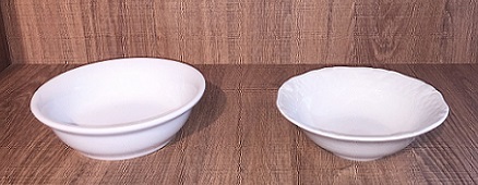 são mais rasas e menores que a preta e branca, conforme a medida e a foto abaixo: